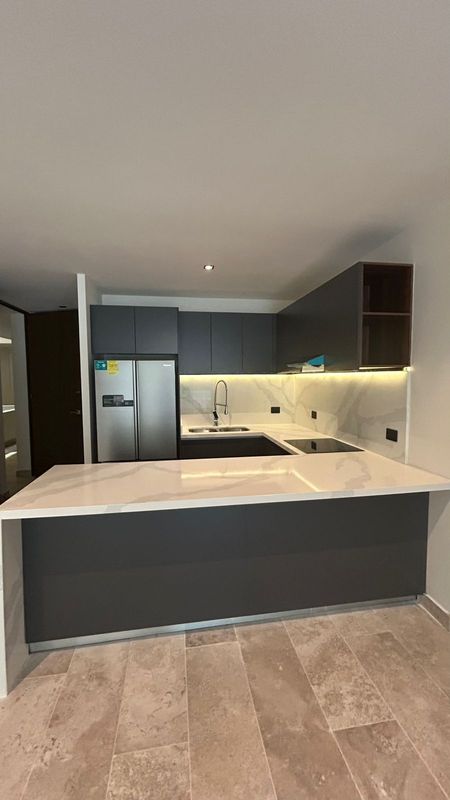 -Cocina integral cubierta con cuarzo blanco Calacatta