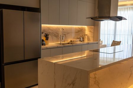 -Cocina integral con parrilla eléctrica, campana extractora y cubierta de granito